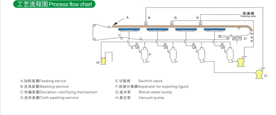 水平帶式真空過濾機是一種自動化程度高的新型過濾設(shè)備,該機以過濾布或網(wǎng)為介質(zhì),使料漿水平布置于過濾介質(zhì)上,充分利用料漿重力和真空吸力實理固液分離,廣泛用于化肥、制藥、冶金、礦山、化工、食品及污水處理等行業(yè)。